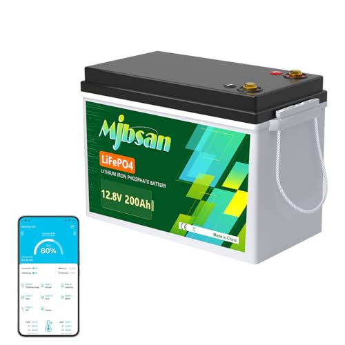 Mjbsan LiFePO4-bilbatteri, 12 V, 200 Ah, med inbyggt BMS på 200 A, litiumbatteri på 2 560 Wh, över 8 000 cykler, perfekt för husbil, solceller, husvagn, båt och camping