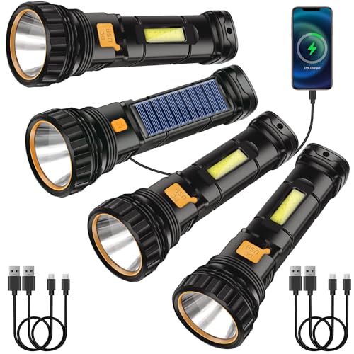 SolcellsLED-ficklampa, USB-uppladdningsbar solgrind, LED-ficklampa med 3 lägen, LED-stroboskop vattentät ficklampa, ficklampor, lampa perfekt för fiske, nödsituation, utomhus (4 pack)