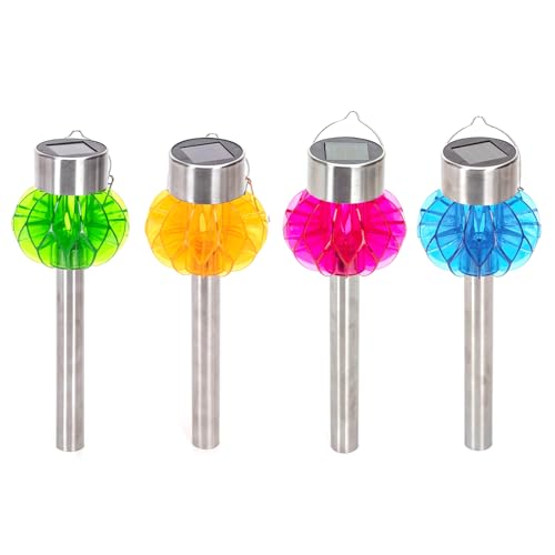Glowster Solcells-LED-ljus för trädgård, rostfritt stål, blandad färg, perfekt för gräsmatta belysning och utomhusdekoration.