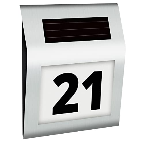 Retoo Individuellt husnummer i rostfritt stål belyst solcells-LED med rörelsedetektor och skymningssensor, väderbeständigt solcellshusnummer, rostfritt stål husnummer IP44, rostsäker vägglampa