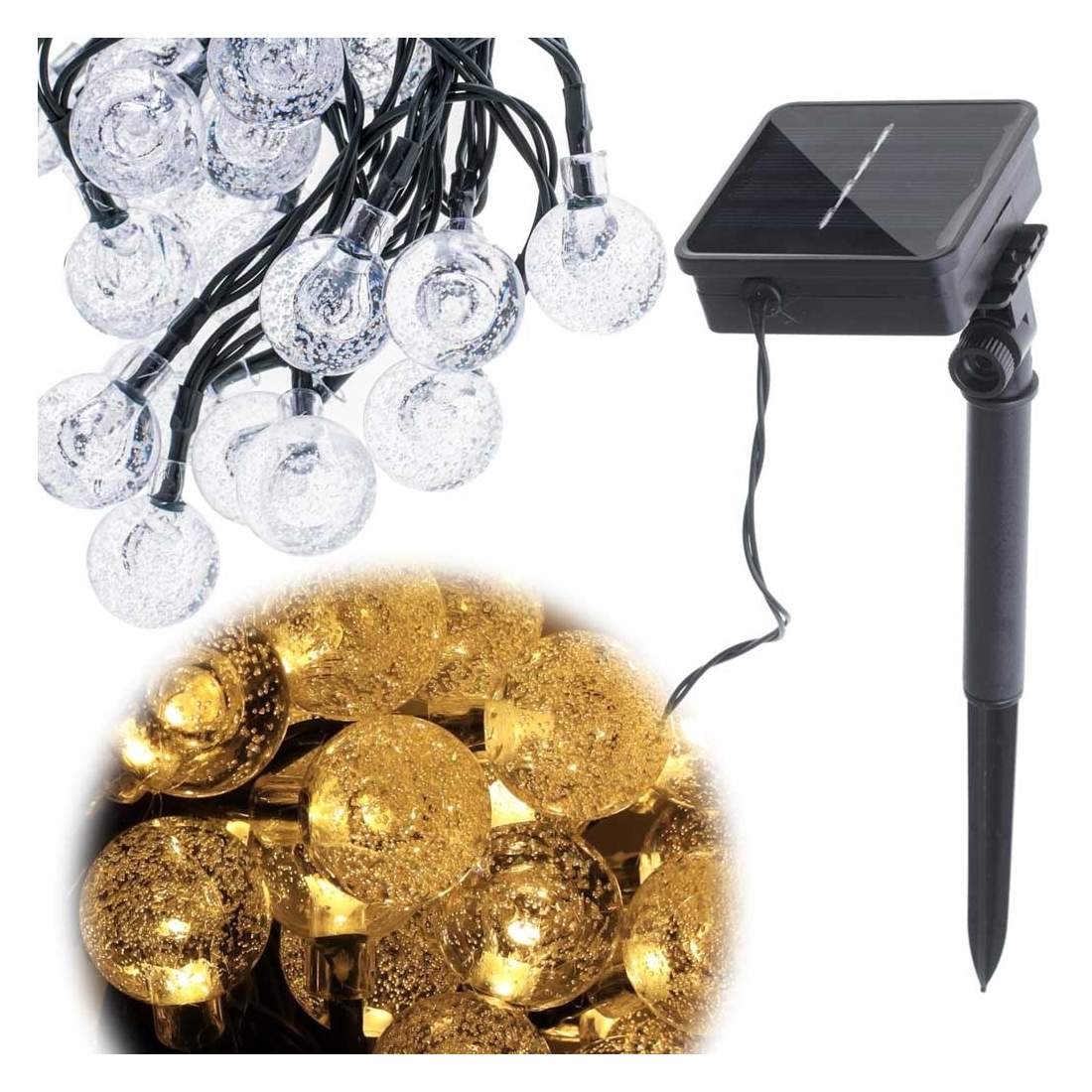 Vattentäta solcells-LED-lampor, 7m, 50 varmvita dioder