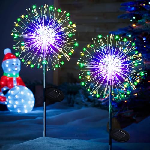 yowin Utomhus, solcell, trädgård, 2 delar, 120 LED-solcellsfyrverkerier, 8 lägen solcellsbelysning, vattentät maskros solcell för trädgård, gräsmatta, terrass, dekor - flerfärgad