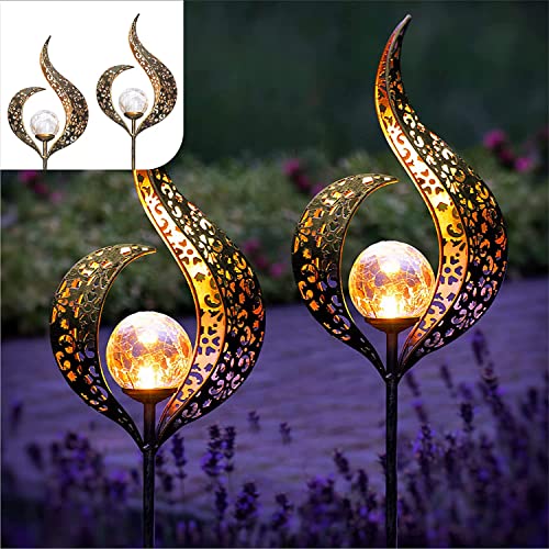 Gadgy Set om 2 sollampor i flamdesign för utomhusbruk | Vattentät solcellsbelysning trädgårdsdekoration | LED trädgårdslyktor
