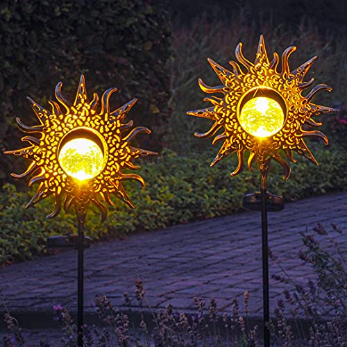 Gadgy solcellsfackla SOL för utomhusbruk |Set om 2 | LED trädgårdsfackla i metall | Solcellsbelysning för utomhusbruk | Trädgårdsdekoration