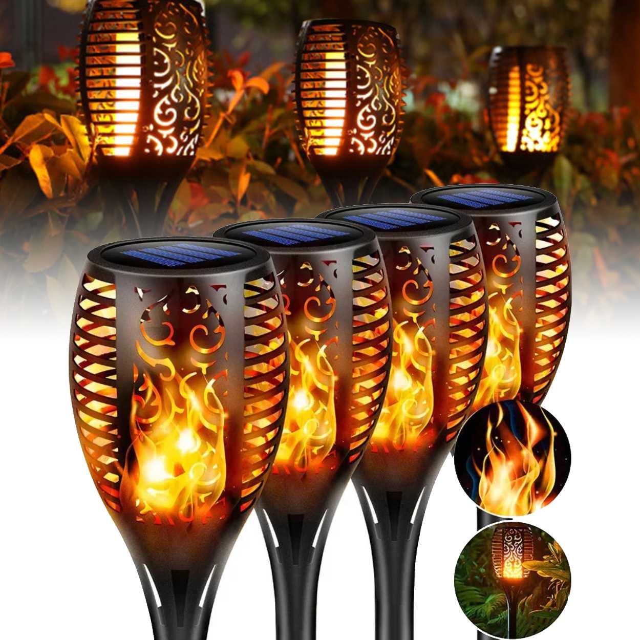 4-Pack Solcellsfackla Lykta med Flammande Ljussken