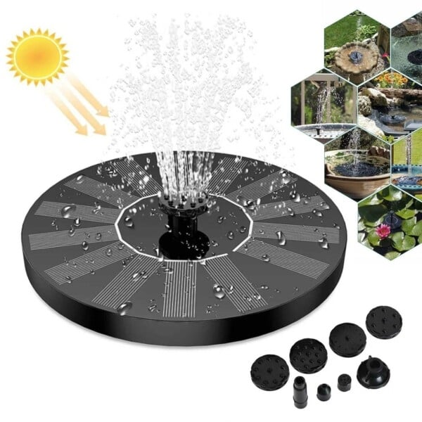 Yiida Solcellsfontän, solcellspump trädgård vattenpump med 1 W solpanel flytande fontän pump med 6 fontänstilar för trädgård fågelbad damm fiskbehållare