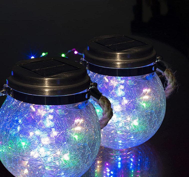 Mysig och dekorativ hängande glasburk, solcellslampa, IP65