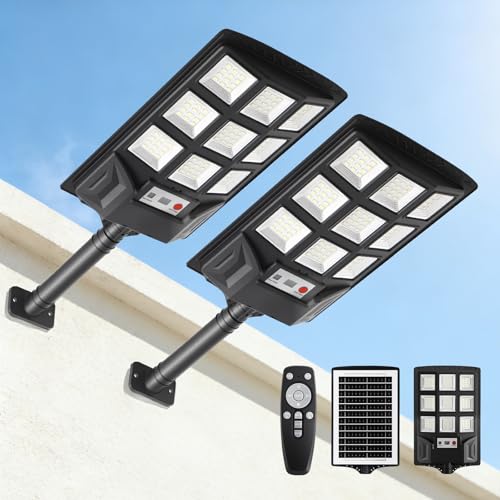 Gimisgu Gatulykta 400 W solcell solcellslampor för utomhusbruk utomhus solcell med rörelsesensor 6 500 K solcellslykta IP67 vattentät sol vägglampa för trädgård, gata (2 stycken)