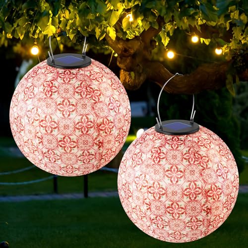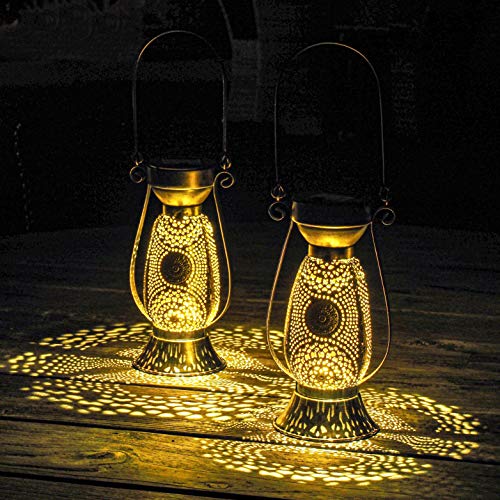 Görvitor Solcellslykta för utomhusbruk 2 stycken solcellslykta i metall för utomhusbruk hängande med IP44 vattentät varmvit LED Görvitor orientaliska solcellslampor utomhus hängande trädgård