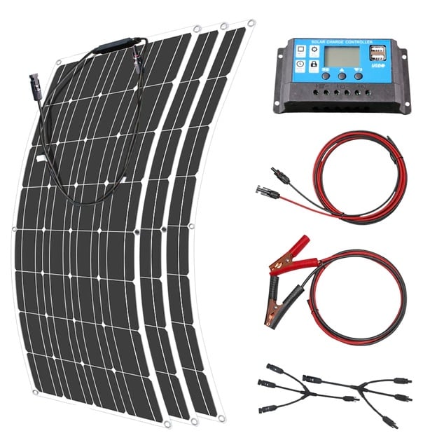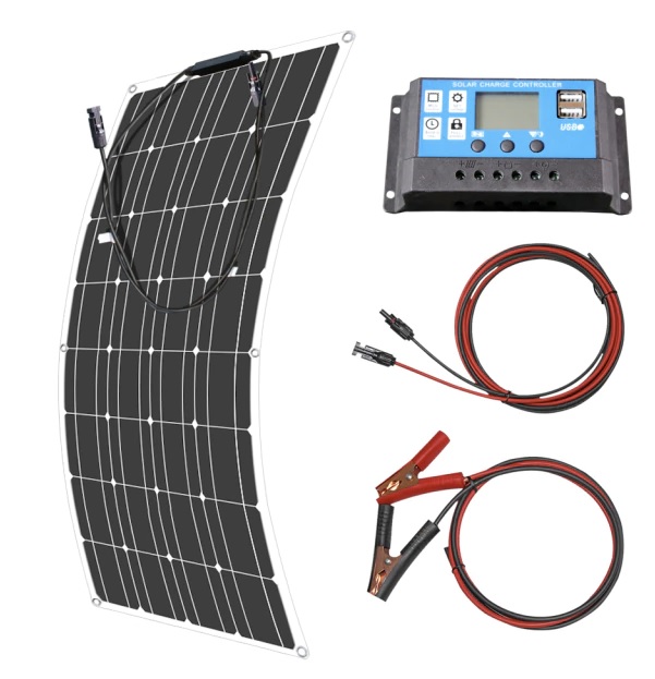 100W Solpanelspaket / Solcellspaket, med solcell, regulator och kablage, monokristallin, flexibel design, expanderbar