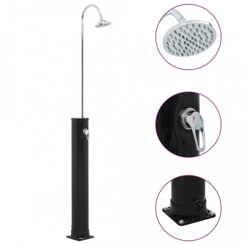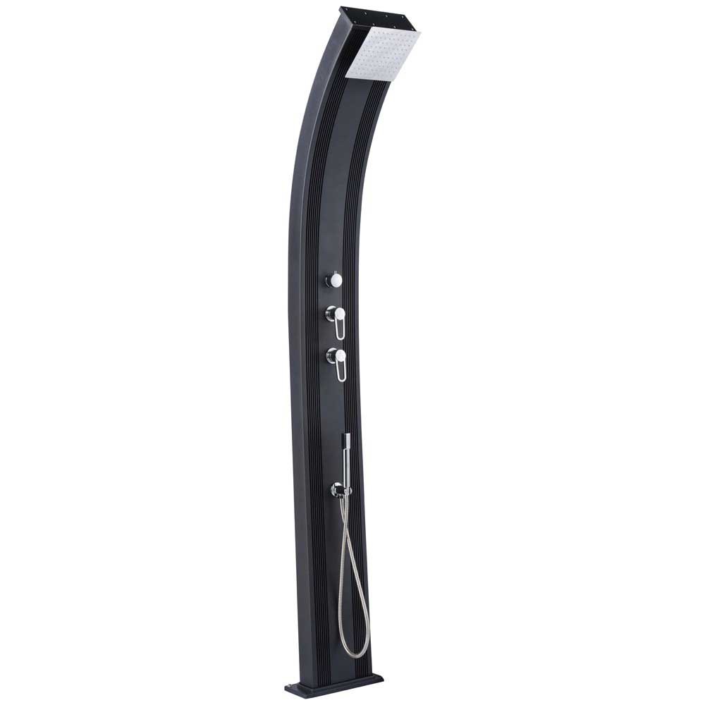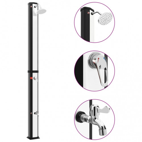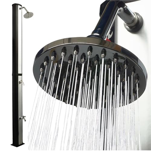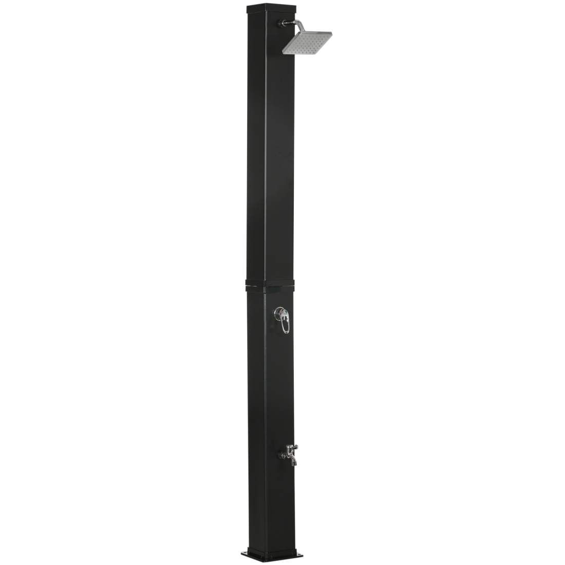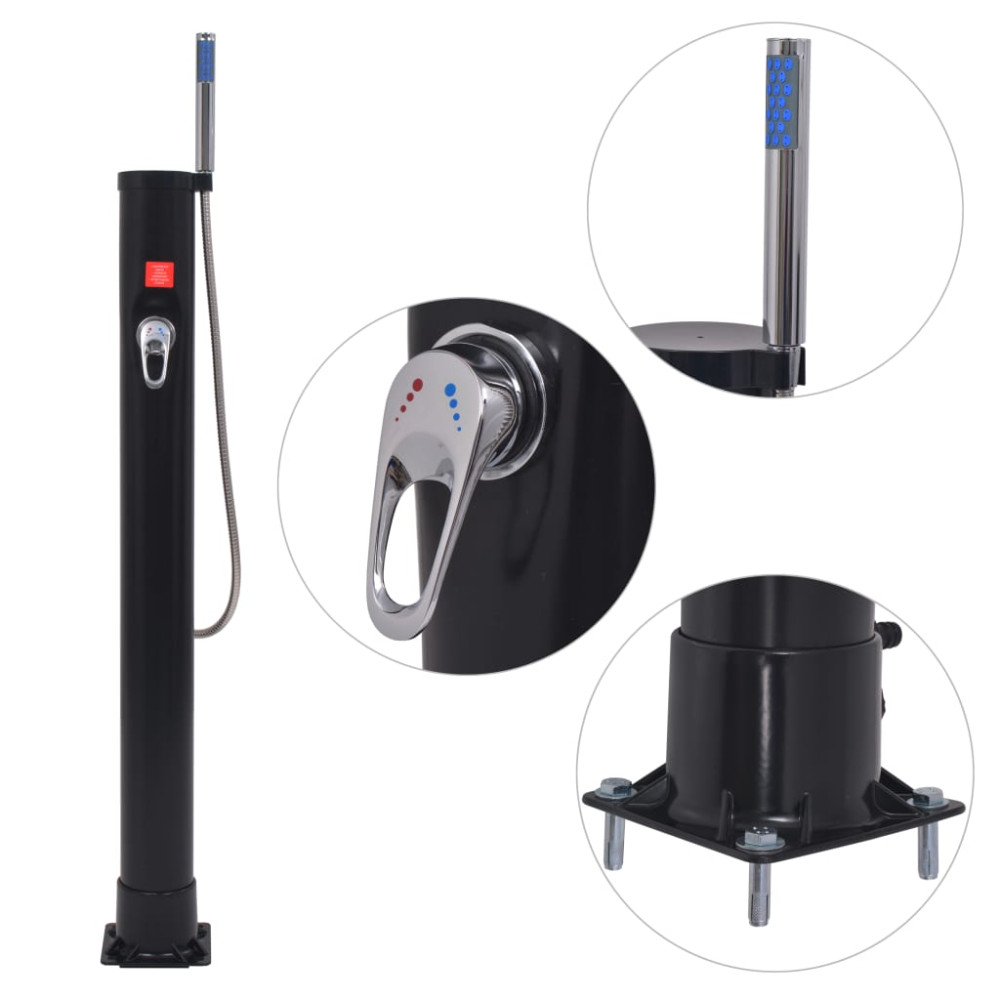 Arebos soldusch | 35 liter | 216 cm | med integrerad termometer | runt duschhuvud | med fotdusch | Trädgårdsdusch med trädgårdsslanganslutning | snap-in-teknik | inkl monteringsmaterial | Svart