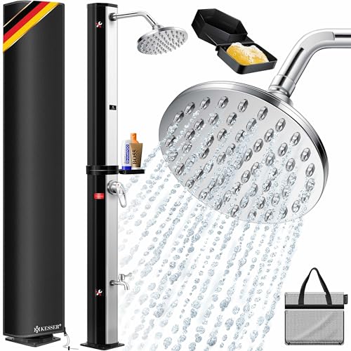 KESSER® Soldusch 35 liter solträdgårdsdusch | varmt vatten max. 60 °C | Pooldusch utan strömanslutning | campingdusch, regnduschhuvud, kran, slanganslutning inkl. hylla, skydd och väska