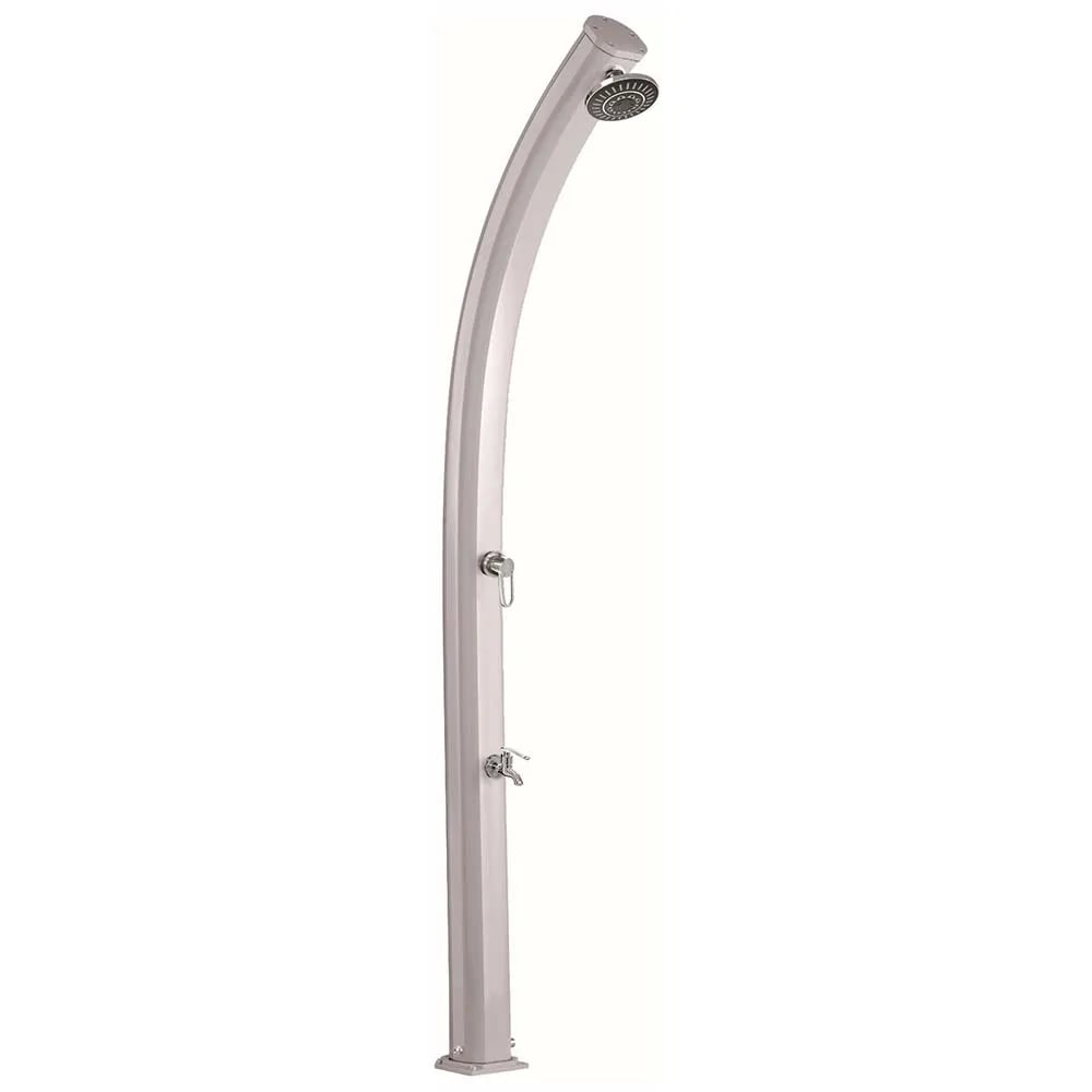 Arebos soldusch | 35 liter | 216 cm | med integrerad termometer | runt duschhuvud | med fotdusch | Trädgårdsdusch med trädgårdsslanganslutning | snap-in-teknik | inkl monteringsmaterial | Silver-Svart
