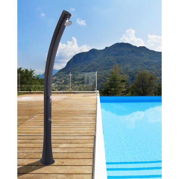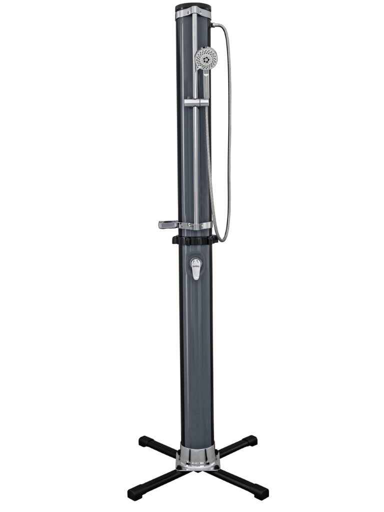 Strattore Soldusch Trädgårdsdusch 40 liter - varmt vatten max 60°C - utan Strömanslutning - med Fotdusch - Trädgårdsslangsanslutning - Pooldusch Solduschkran - Ocean i Svart/Silver
