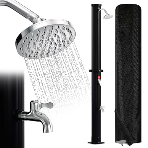 Cecaylie Soldusch, 35 liter, sol, trädgårdsdusch, energisparande, svart, med svängbart regnduschhuvud och vattenkran, trädgårdsslanganslutning, utan strömanslutning, pooldusch, camping