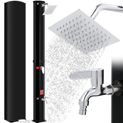 UISEBRT Soldusch, 35 liter, soluppvärmd trädgårdsdusch, varmt vatten, max. 60 °C, utan strömanslutning, utomhusdusch, pooldusch, camping inkl. vattenkran, duschmunstycke, anslutning (svart)