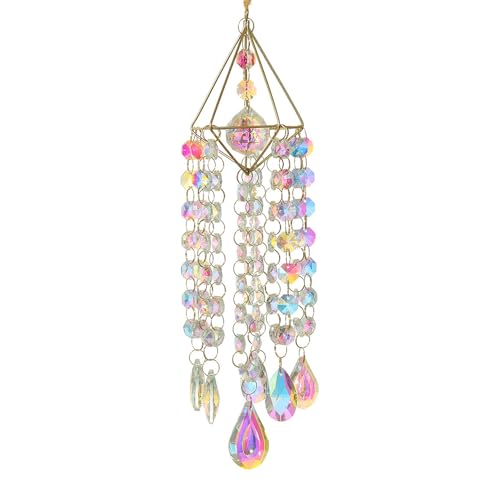 YU FENG Hängande kristallprisma solfångare fönster trädgårdsdekoration prydnad regnbåge glaspärlor kedja hänge kristall vindspel