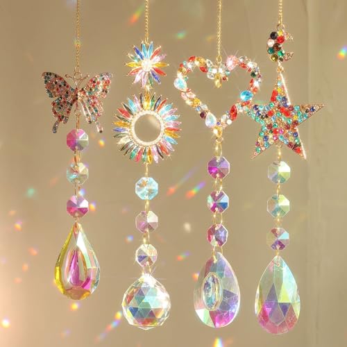 BDHYYM 4 stycken solfångare kristall, suncatcher kristaller att hänga upp, regnbåge klart glas kristallkula prisma hänge för fönster hem trädgård dekoration