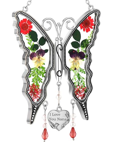 KY&BOSAM Presenter till mormor I Love You Nana fjäril solfångare mormor presenter mors dag målat glas solfångare hängande prydnad för fönster vindspel mors dag alla hjärtans dag födelsedag