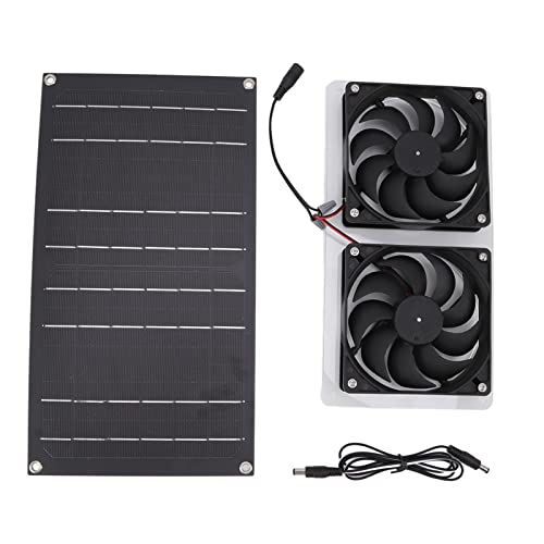 SPYMINNPOO 20W Solfläkt, Tyst Bärbar Ventilationsfläkt med Monokristallin Solpanel för Hönshus, Husdjurshus