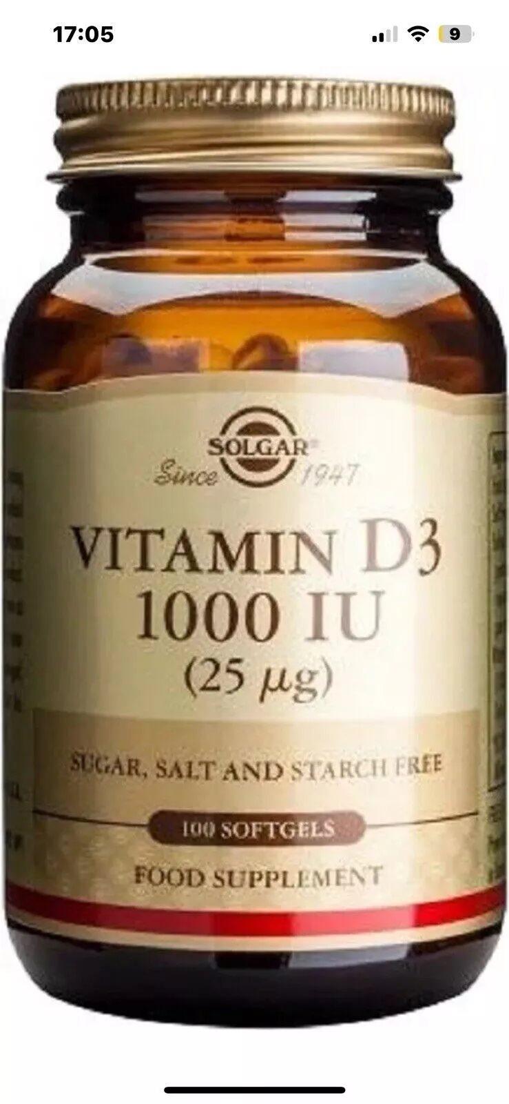 Solgar Vitamin D3 1000iu 25µg 100 Softgels Gluten Dairy Sugar Salt Starch Free