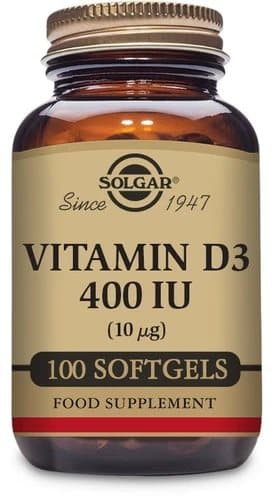 Solgar Vitamin D3 400 IU (10 μg) Softgels Pack of 100 Cholecalciferol.