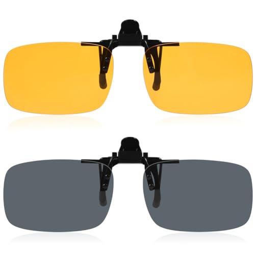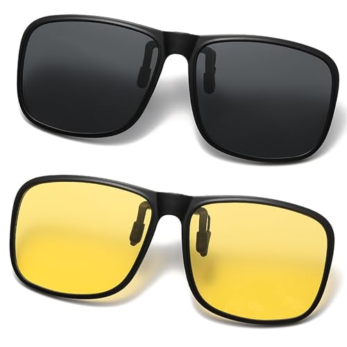 TERAISE Clip On Solglasögon, 2-Pack / Day + Night Vision Män / Kvinnor Uv400 Flip-Up Polariserade Solglasögon, Bekväm / Säker Passform Över Receptglasögon Idealisk För Körning Och Utomhus / Fiske (Svart + Gul)