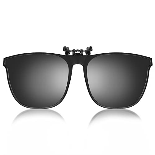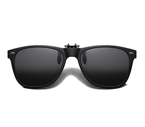 YAMEIZE Polariserade Clip-on solglasögon – för kvinnor och män, UV400 skydd flip up solglasögon körning utomhus .., Svart ram svart grå