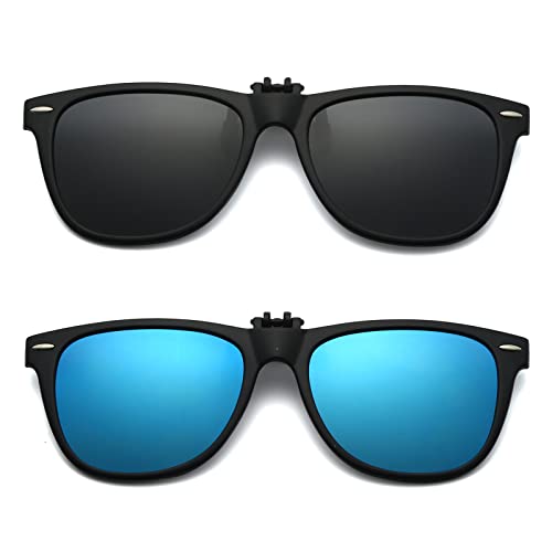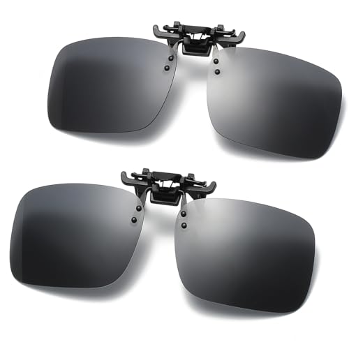 AUYAO Clip-on solglasögon, 2 st polariserade linser som passar över receptbelagda glasögon, polariserad flip up-passform solglasögon, polariserade nattkörningsglasögon clip-on anti-bländning för män
