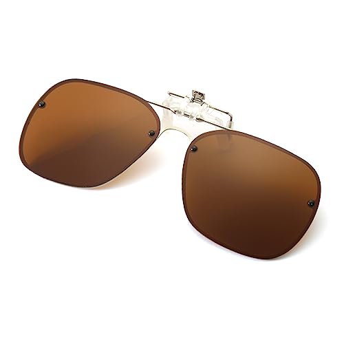 Långhållarna clip-on solglasögon – polariserade Clip-on flip-up-solglasögon över receptbelagda glasögon för män kvinnor UV400 utomhus körning klämma på nyanser för glasögon, Brun