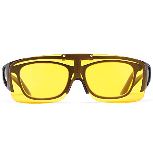 MIRYEA körglasögon för mörkerseende anti-bländande passform över korrigeringsglasögon flip up HD polariserade solglasögon för kvinnor män, GUL