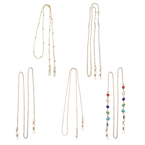 ATBUSS 5-pack glasögonkedjor, vintage pärlor solglasögon kedjor, pärlglasögonkedjor, halkfria glasögonkedjor, glasögontillbehör, för solglasögon, läsglasögon, glasögon, flera färger, Länge 70 cm
