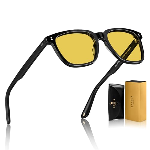CARFIA Herrnattglasögon med rektangulär acetatram, gula solglasögon, mörkerseende glasögon för bilkörning, cykling och nattlöpning