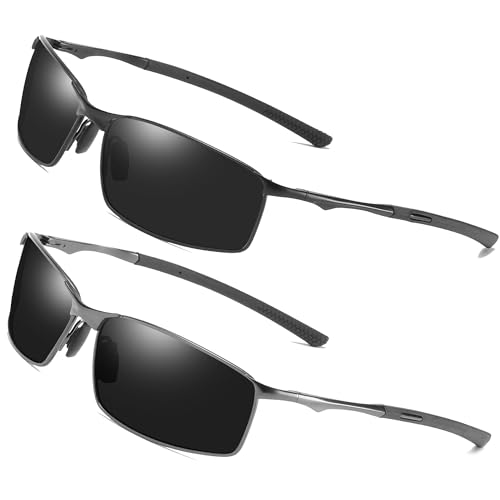 AORON Polariserade solglasögon för män, utomhus, sport, skyddsglasögon, UV-skydd, körglasögon, 1 x svart + 1 x grå, Einheitsgröße