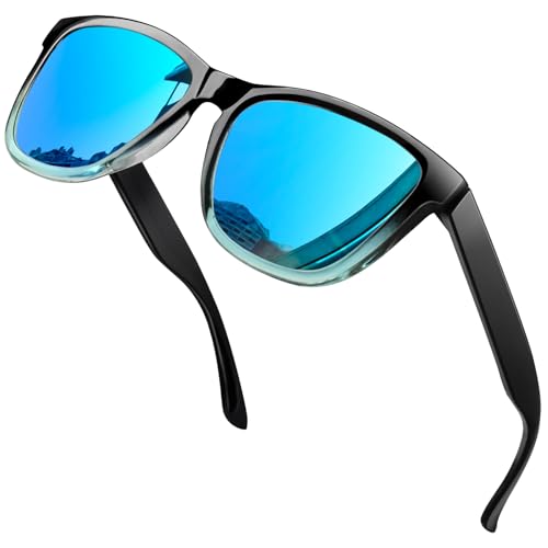 Joopin Fashion Square Solglasögon Herr Polariserade Retro Rektangulära Solglasögon UV400 Dam Spegel Stor Polarized Sunglasses for Men and Women för Utomhus Vandring Fiske Golf Blå Spegellinser