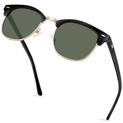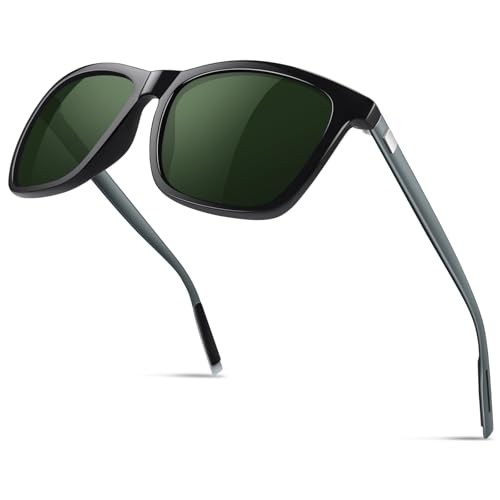 CGID Polariserade solglasögon, herr och dam, retro solglasögon herr, sport utomhus, golf, cykling, fiske, vandring, glasögon, solglasögon, H svart ram grön lins/polariserad, M