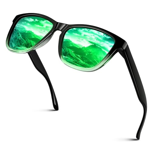 CGID Polariserade solglasögon, herr och dam, retro solglasögon herr, sport utomhus, golf, cykling, fiske, vandring, glasögon, solglasögon, M Svart gradient ram grön speglad lins/polariserad, M