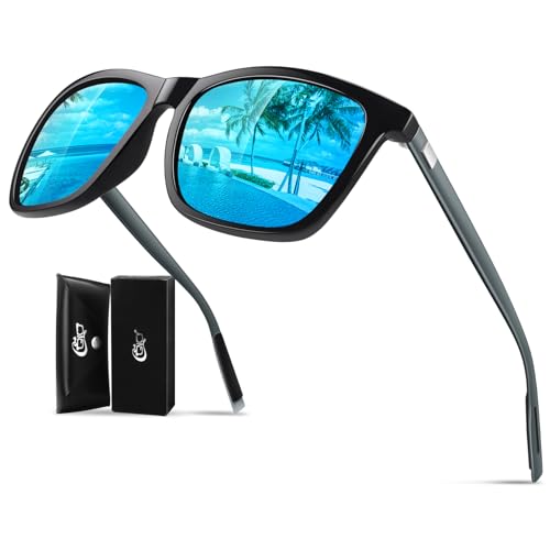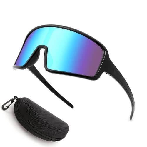 CGID Polariserade solglasögon, herr och dam, retro solglasögon herr, sport utomhus, golf, cykling, fiske, vandring, glasögon, solglasögon, H Svart ram blå speglad lins/polariserad, M