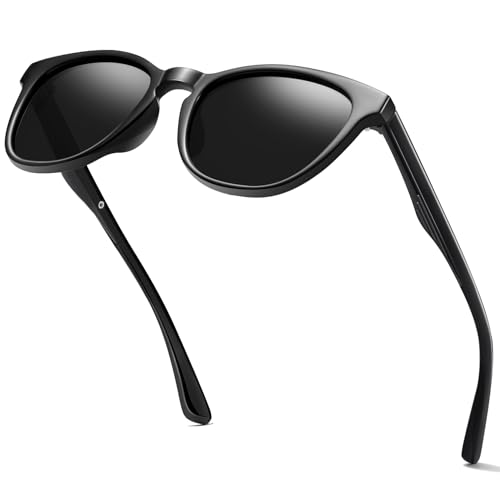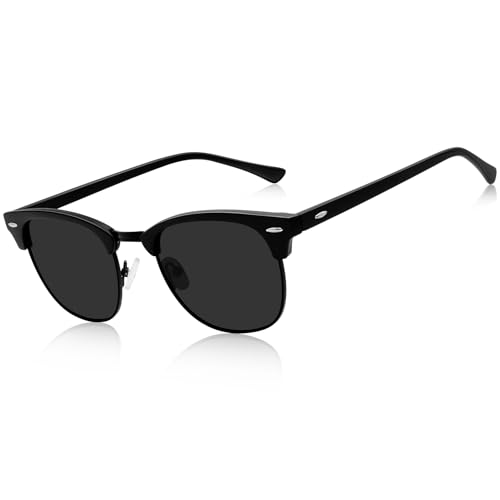 CGID Polariserade solglasögon, herr och dam, retro solglasögon herr, sport utomhus, golf, cykling, fiske, vandring, glasögon, solglasögon, H Svart ram svart lins/polariserad, M