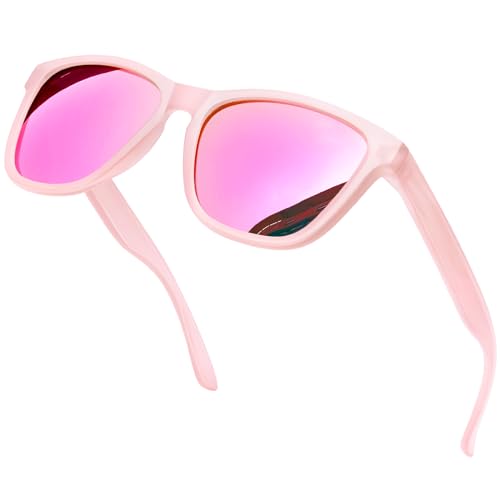 KANASTAL Stora Solglasögon Herr och Dam Retro Polariserade för Resor Vandring Fiske och Vardag UV400 Skydd Transparenta Bågar Spegelrosa Glas Rosa Tinningar
