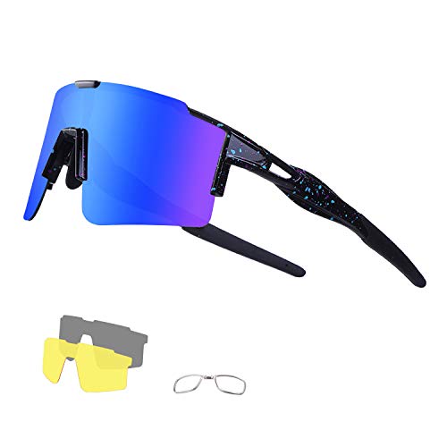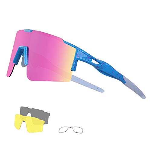 DUDUKING sportglasögon/cykelglasögon/solglasögon för män och kvinnor med 3 utbytbara linser, TR90, UV400-skydd, vindskydd, cykelsportglasögon för utomhusaktiviteter, bilkörning, fiske, löpning, vandring