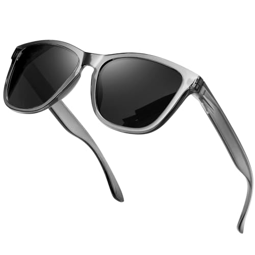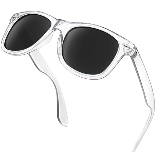 KANASTAL Stora Solglasögon Herr och Dam Klassisk Retro Polariserade för Resor Vandring Fiske och Vardag UV400 Skydd Grå Genomskinliga Bågar Spegelsilver Glas