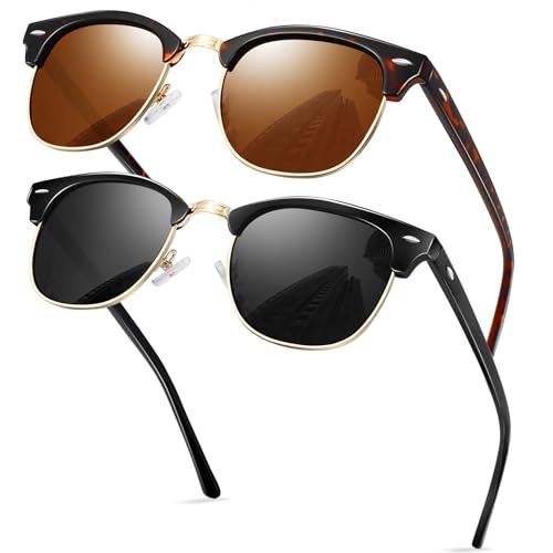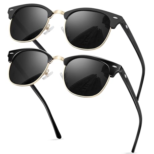 KANASTAL Par Svart Solglasögon Polariserade Herr Halvbåge Sol Glasögon Dam Klassiskt Browline 2 Pack Black Sunglasses Polarized Women Men Half Rim Vandring Körning Fiske - Guldfärgad Båge Svarta Glas