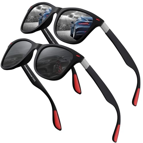 KANASTAL 2 Paket Matt Svart Män Solglasögon för Kvinnor Polariserade UV400 Herr Dam Sol Glasögon Men Sunglasses for Vandring Golf Körning Fiske