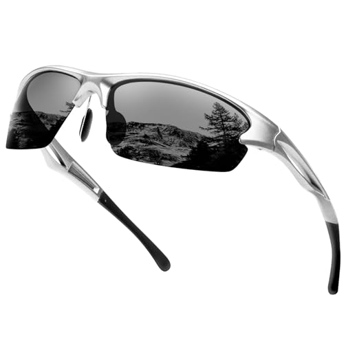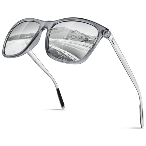 CGID Polariserade solglasögon, herr och dam, retro solglasögon herr, sport utomhus, golf, cykling, fiske, vandring, glasögon, solglasögon, H Grå ram silver speglad lins/polariserad, M