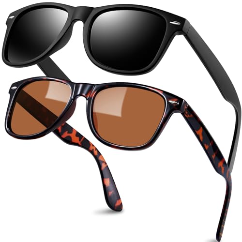 KANASTAL 2 Paket Brun Män Solglasögon för Kvinnor Polariserade UV400 Herr Dam Sol Glasögon Svart Men Sunglasses for Vandring Golf Körning Fiske