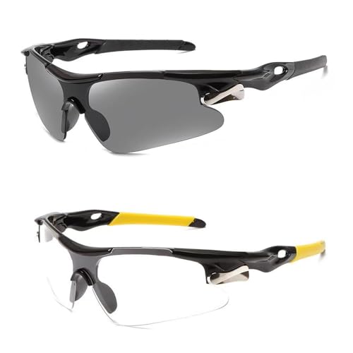 AYNKH 2 st cykelglasögon, solglasögon utomhus, löpning solglasögon för män kvinnor, UV400 definition solskydd, klara cykelglasögon, älskare av vandring, bergsklättring, cykling och fiske.