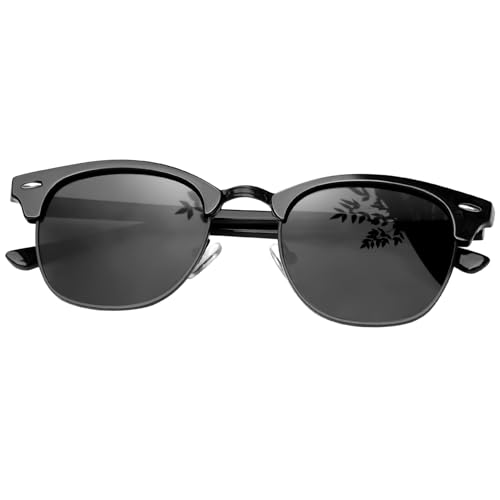 KANASTAL Halvbåge Polariserade Solglasögon Herr Klassiskt Metall Browline Polarized Sunglasses for Men Women Svart Guld Sol Glasögon Dam Classic for Vandring Körning Fiske - Svart och Sköldpaddsfärgat
