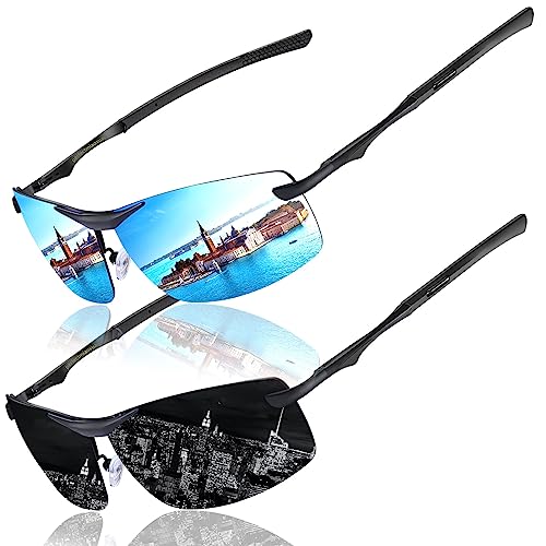 KANASTAL 2 Paket Blå Män Solglasögon för Kvinnor Polariserade UV400 Herr Dam Sol Glasögon Svart Men Sunglasses for Vandring Golf Körning Fiske