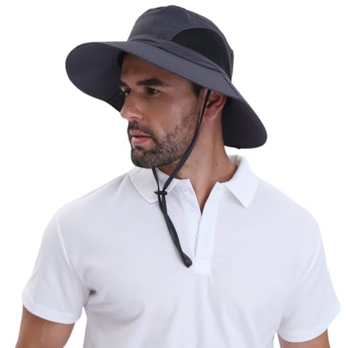 TOP-EX XL/XXL herr solhatt brett brätte UPF 50+ och vattentät, stora utomhussommarhattar för promenader vandring fiske camping vandring segling, vikbar justerbar andningsbar 54–66 cm, TX702_Mörkgrå,